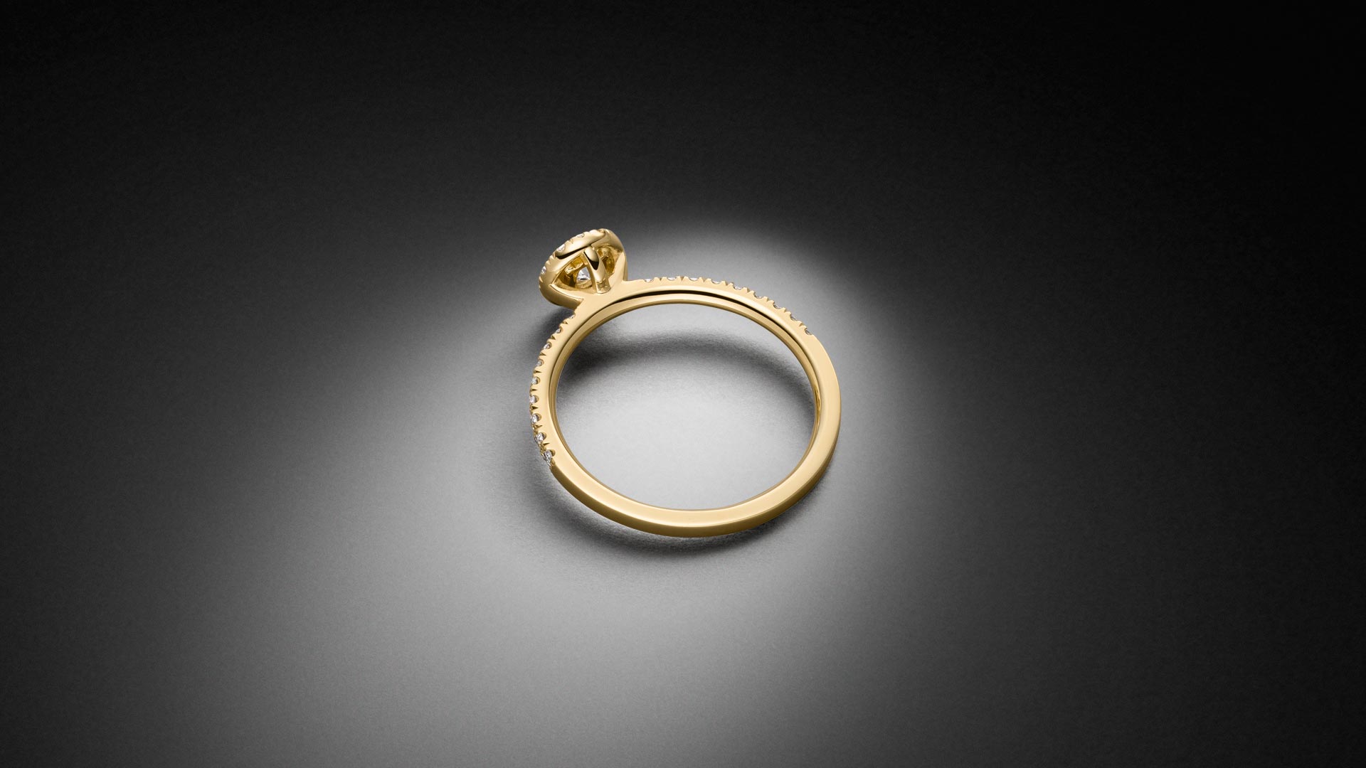 Diamant Halo Solitär Ring mit 0,25ct zentralem Diamant und weiteren 0,22ct Diamanten im Brillantschliff gefertigt in 750 Gelbgold – STEINBACH Goldschmiede