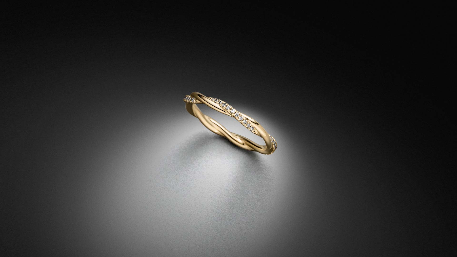 Gedrehter Kordelring aus 750 Gelbgold, bestehend aus mattiertem Gold und einem diamantbesetzten Ring mit 0,15 ct Diamanten in Top VS/F Qualität – STEINBACH Goldschmiede