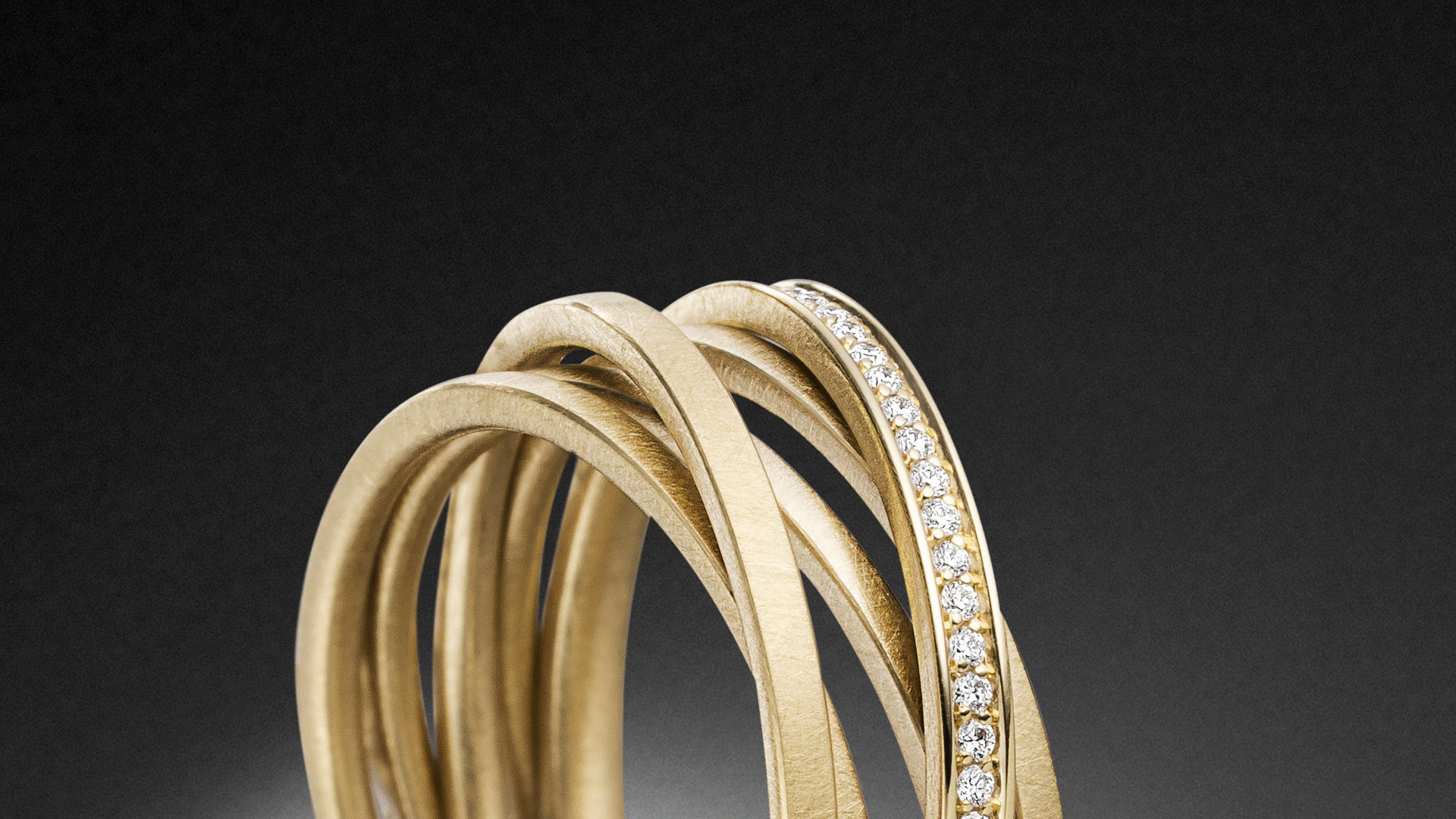 Kettenring Gelbgold 5 Ringe Diamanten Steinbach Goldschmiede